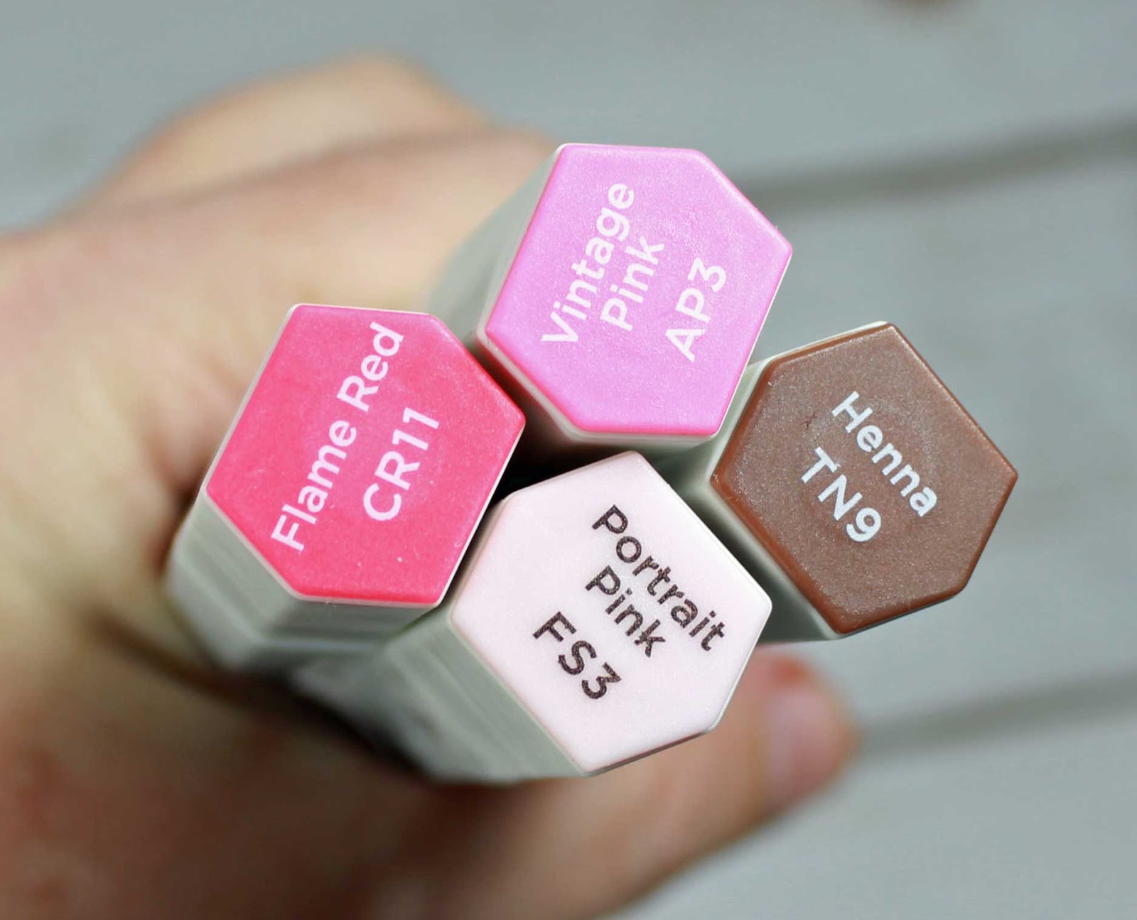 This card measure 4 1/4 x 5 1/2". To begin, I stamped the image onto white cardstock using Tuxedo Black Memento Ink pad. Using my patterned paper as a guide I picked out the markers and cardstock for this card. I colored the image using Crafter's Companion Illustrator pens.